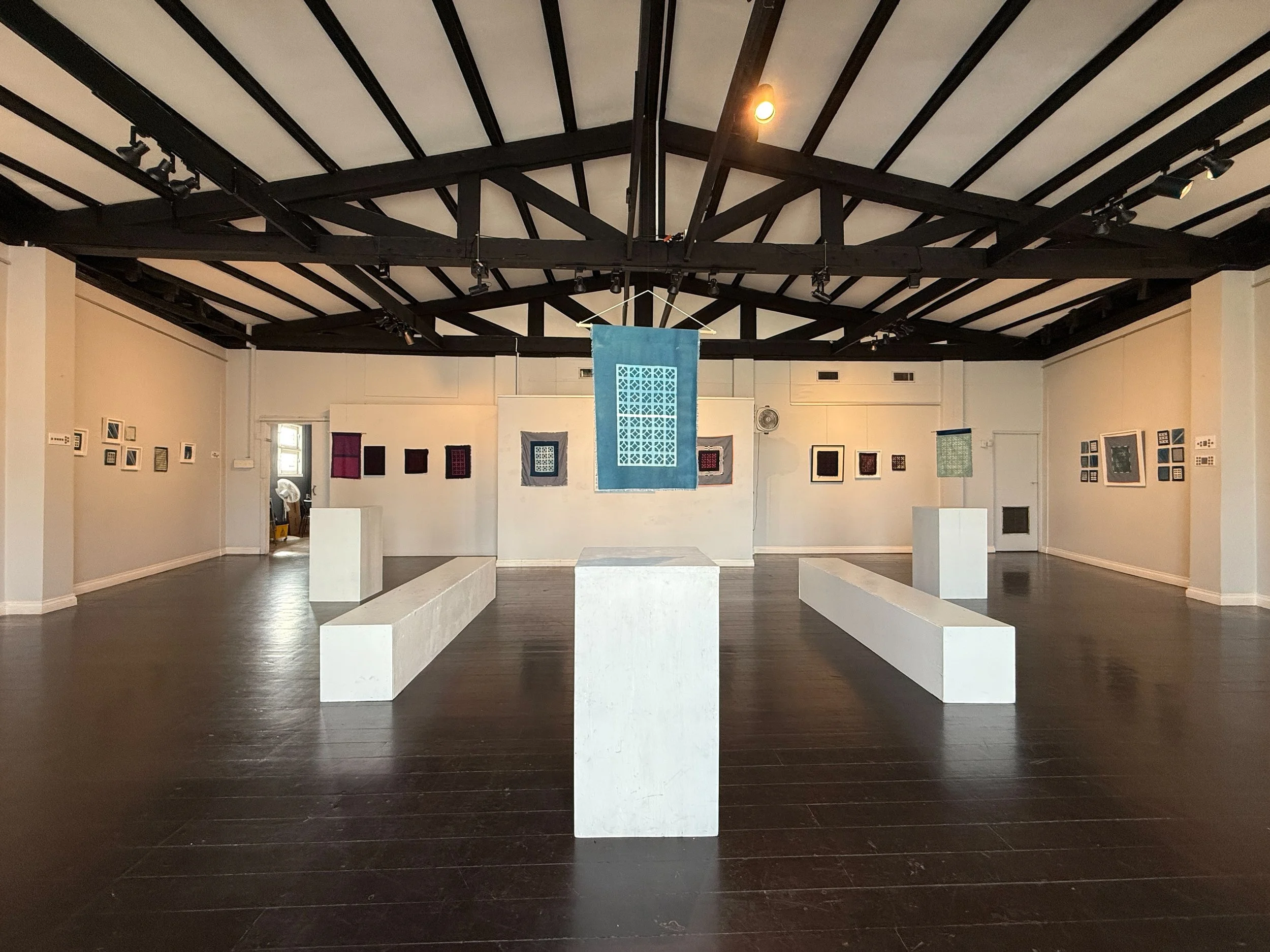 Unique, handmade, cyanotype photographs of breeze blocks & electrical wires in Port of Spain, Trinidad.